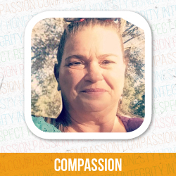 Headshot of Diane Hudgens with the core value "compassion" underneath