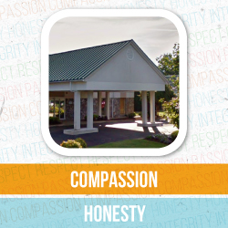 Photo of Ashland Nursing and Rehabilitation Center with core values “compassion” and “honesty” printed around it