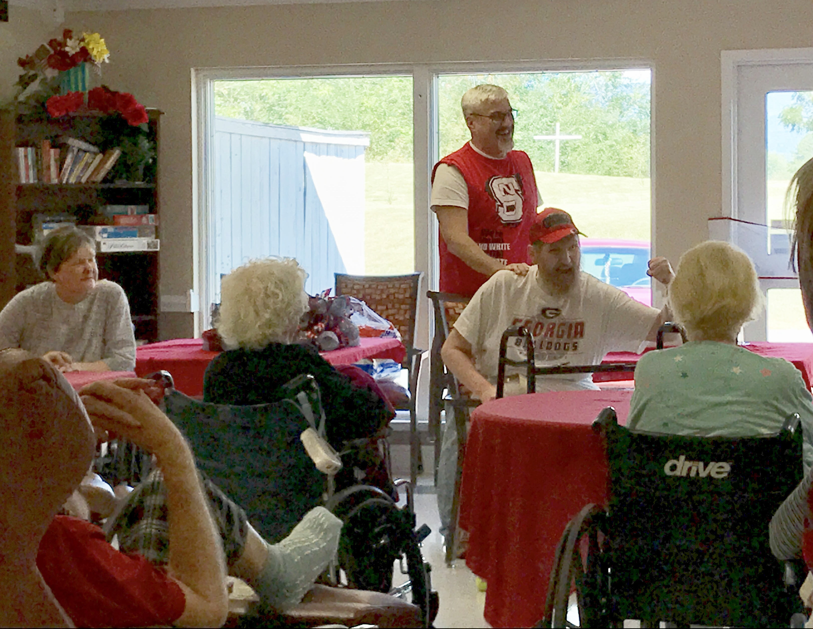Clay County Care center executive director, Scott Alexander surprises resident Ricky.